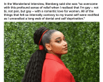 “Had I had more representations of black gay women growing up I probably would’ve come to conclusions around my sexuality much earlier because I would’ve had more of a conception of what was possible and okay,” she said in the Wonderland interview. “Having more representations of black gay women now and seeing myself reflected in them has been a huge aid in seeing myself as whole, complete, and normal.”