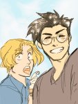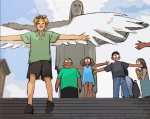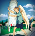 Recently I had a dream that Teo (the “angel”) was finished with his job and he had to leave. I was really sad about it so I told Rem and she planted in my head the idea of Teo going on vacation after years of guardianship work so I had to draw it. When I posted on Twitter shenanigans ensued