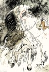 Alcohol-based marker, watercolor, and ink on watercolor paper.